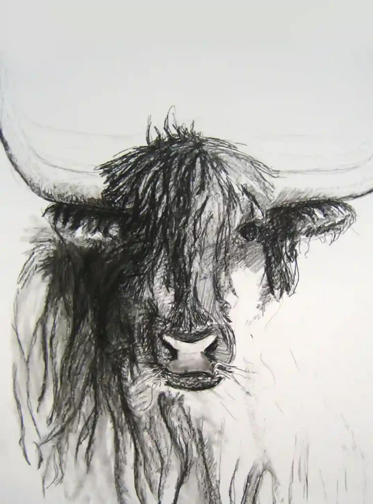 Im Kontrast von Schwarz und Weiß, von offenen und dicht erarbeiteten Körperpartien werden mit der Flüchtigkeit der Technik, mit der Leichtigkeit des Strichs kurze Momente von Kraft und Dynamik der Tiere festgehalten. Der Betrachter wird hierbei im direkten Kontakt in die Arbeit mit einbezogen.