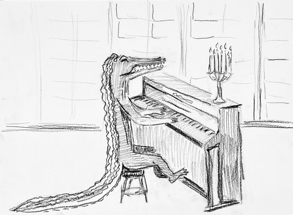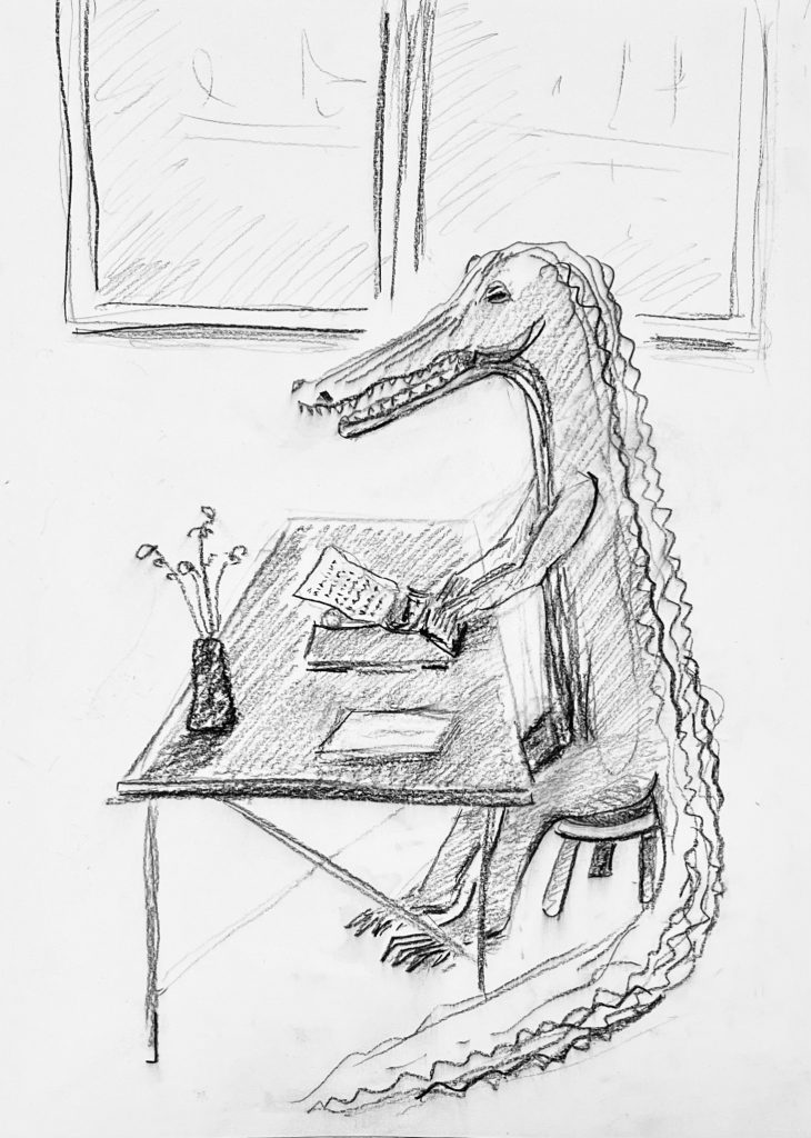 Skizze für Skizze macht sich Bronislava von Podewils mit der Körperlichkeit und den Bewegungsabläufen der Tiere vertraut, um diese Erfahrung letztlich bei der Gestaltung der plastischen Arbeiten aufzugreifen. Wie schon zu Beginn des vergangenen Jahrhunderts die Bildhauerin Renée Sintenis entwickelt die Künstlerin mittels der Zeichnung ein Gefühl für die Gestalt der Tiere.